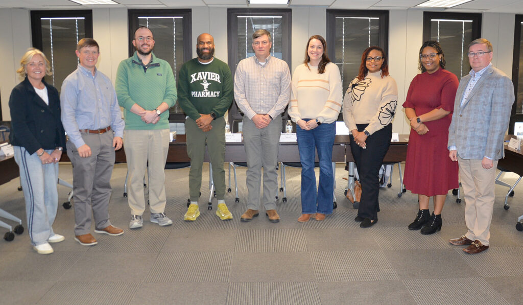 Drug Utilization Review Board members (from left) Dena Jackson, MD; Joshua Pierce, PharmD; Joshua Trull, DO; Terrence Brown, PharmD; Greg Browning, MD; Rachel Burt, PharmD; Chrysanthia Davis, PharmD; Gaylen Sanders, MD; Steven Clark, MD. Not pictured are Amy Catherine Baggett, PharmD; Jessica Lavender, MD; Holly Moore, PharmD.